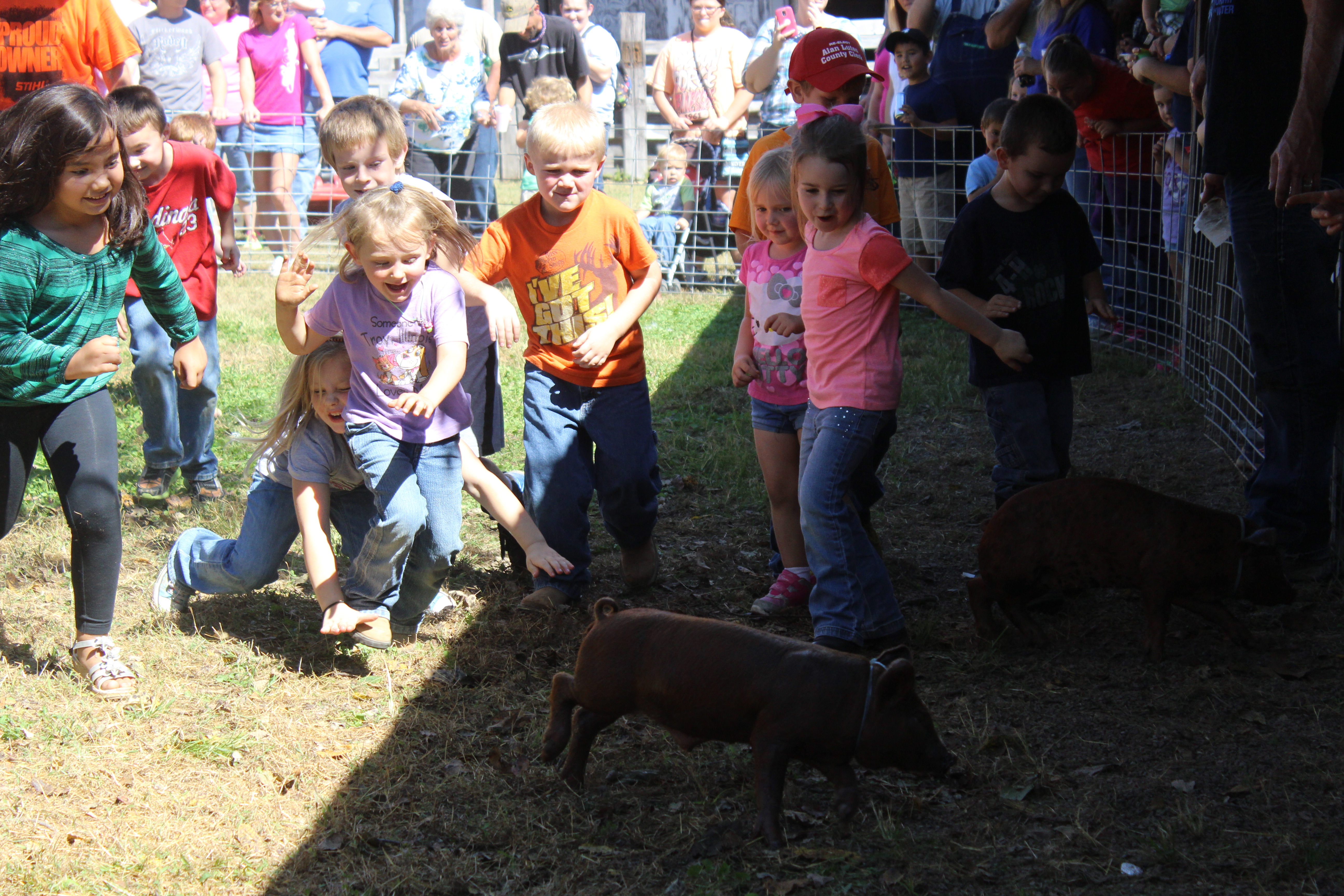 Fair activities continue throughout the weekend. On Saturday, the Coon Dog Treeing Contest starts at 10:00 am with check in at 9:30. A Loggers Timber Relay Challenge will begin at noon and games will be held throughout the day including turtle races, frog races, greased pig contest, hog hollering, scavenger hunt, pie eating contest, toy tractor races, pony rides, and a farmer’s relay. A 4-H Livestock Show will be held prior to the 4-H Auction at 3:00 pm. A horse show will begin at 6:00 pm.
