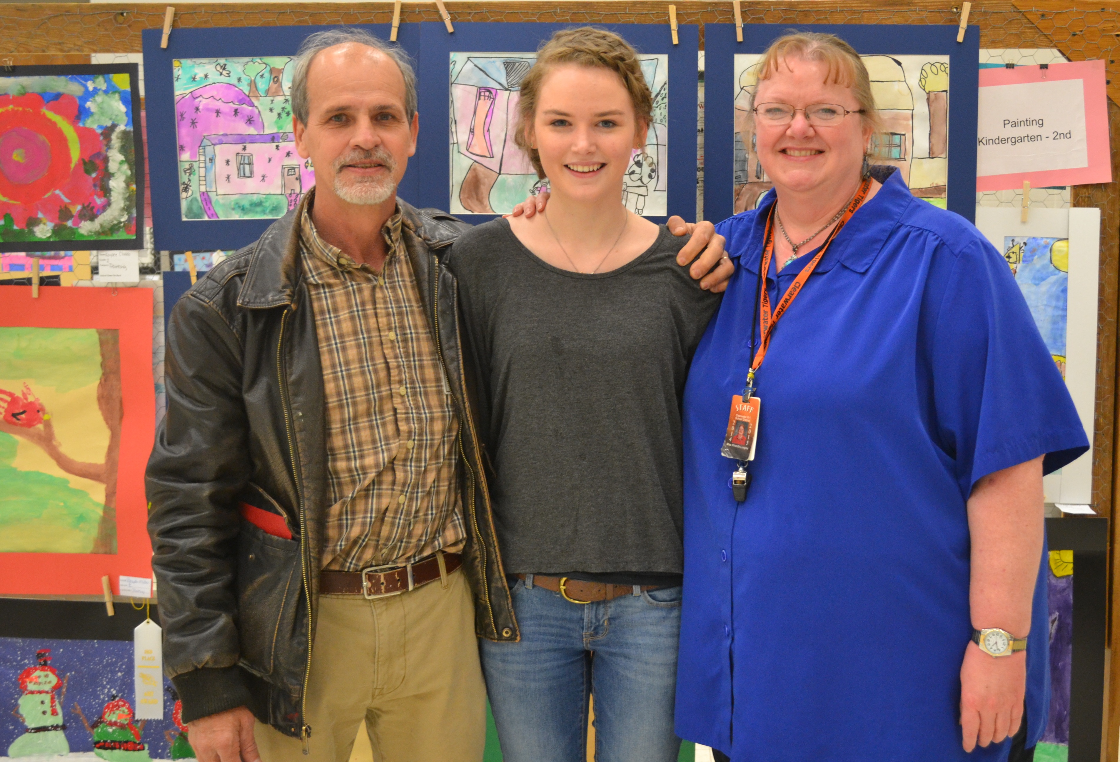 Senior Michelle Lunyou and elementary art teacher Rhonda Lunyou view their last high school art show along with CHS art instructor Dennis Matthews. Michelle will be graduating and Mrs. Lunyou retiring at the end of school in May. Students at Clearwater High School entered several pieces of art in the Black River League Art Show, held on Friday, March 18 at Ellington. High school winners included: