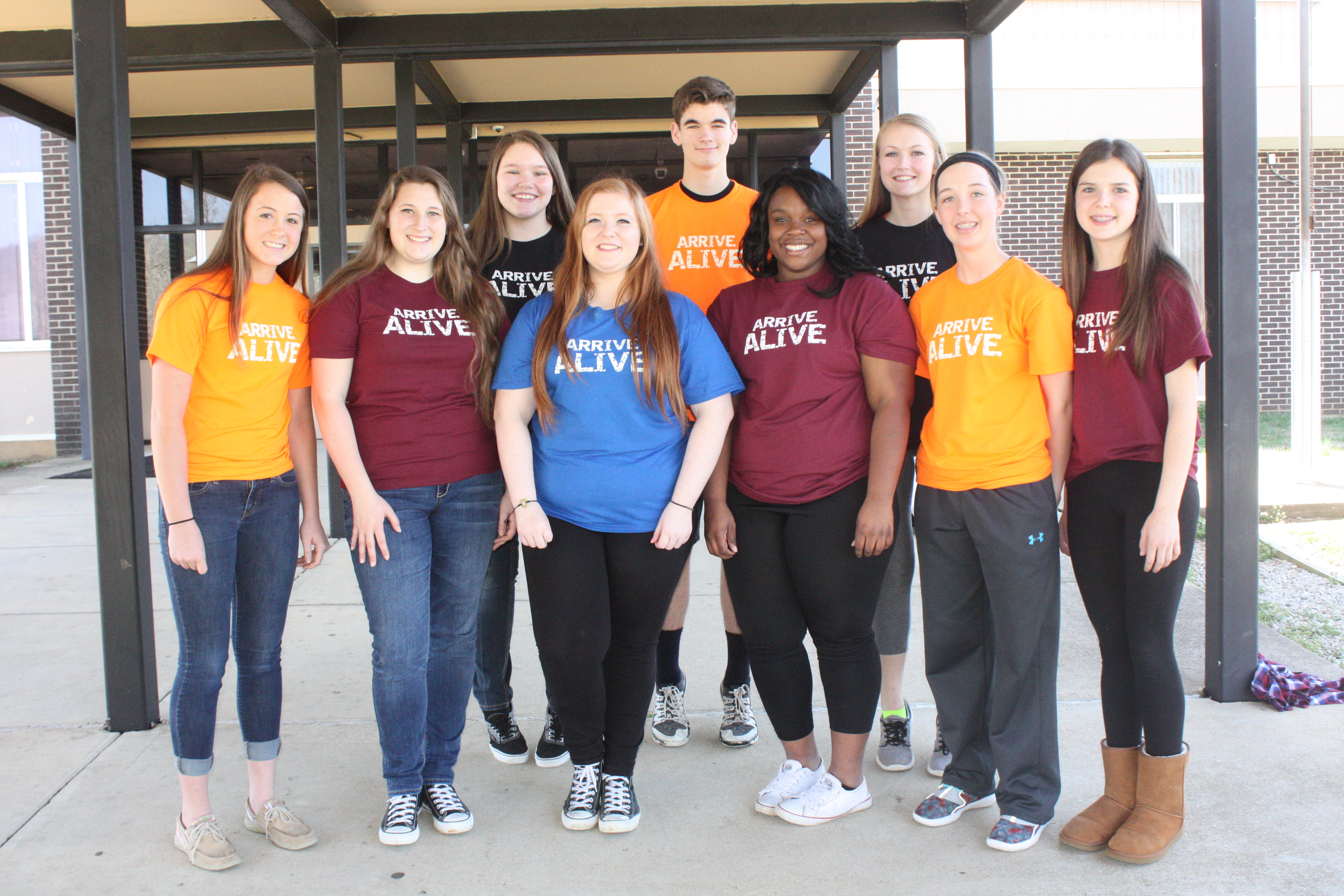 These FCCLA students are wearing “Arrive Alive” t-shirts to promote Missouri’s new “It Only Takes One” campaign. In the past, area high schools have participated in a six-week program called Battle of the Belt to raise seatbelt use at their schools. However, seatbelt use is not the only traffic safety issue high school students face. “It Only Takes One” stresses the importance that teen drivers realize it only takes ONE text, ONE drink, ONE call, ONE reach, ONE distraction, to cause ONE fatal moment but that ONE clicked seat belt could be the difference between life and death in a car crash.