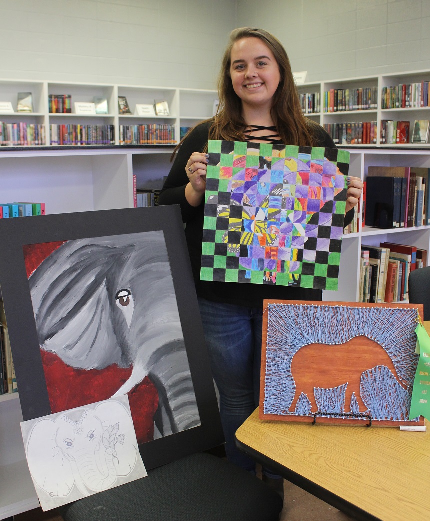 Drawing is what Vinnie loves to do most! She draws to clear her mind and, sometimes, “just to see what I can come up with, which usually results in an elephant masterpiece of some sort…” She plans to pursue a career as a physical therapy assistant and, although her future chosen profession may not contain art, she says “I will carry my passion for it with me wherever I go!”