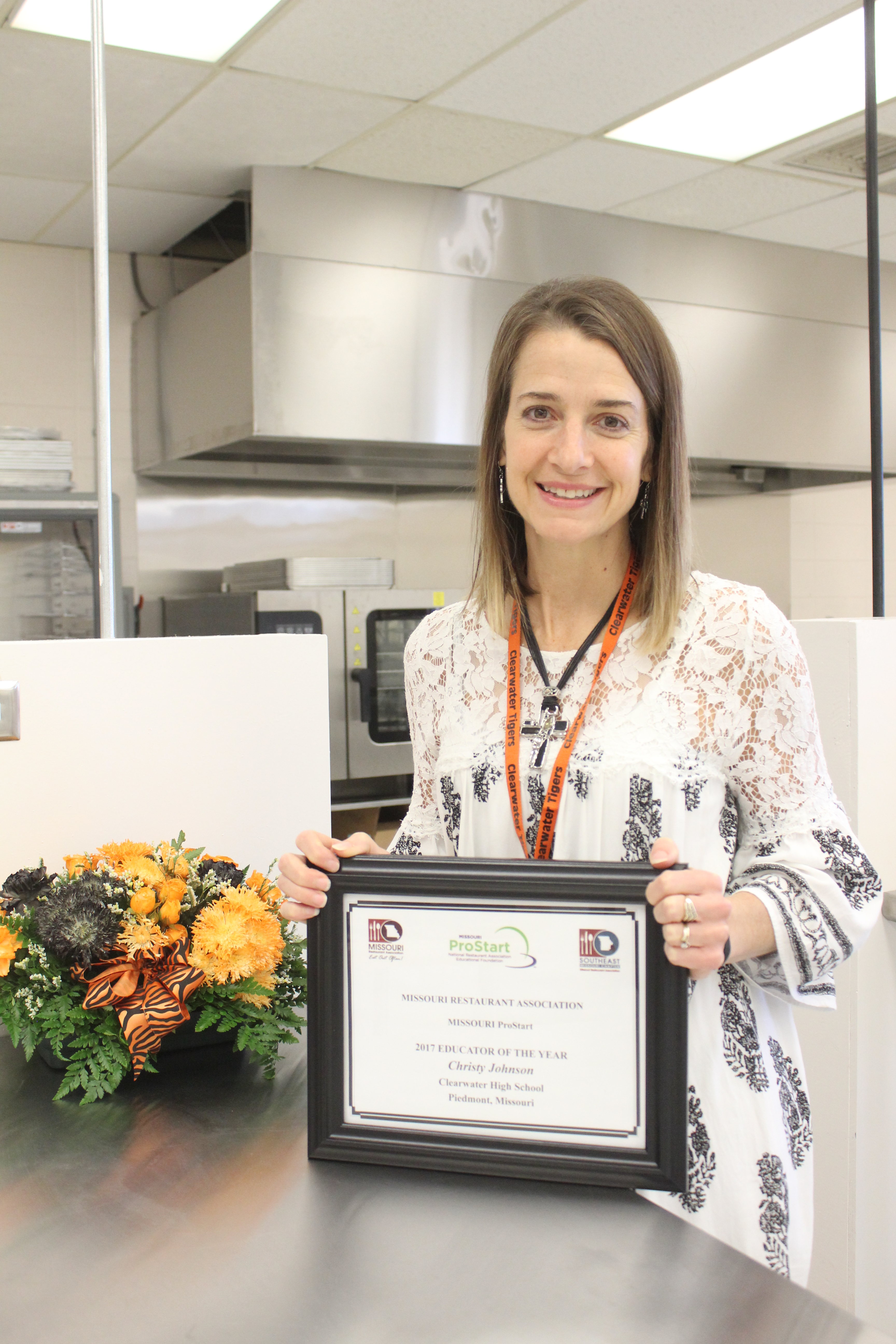 Clearwater’s own Mrs. Christy Johnson was honored today as the Missouri ProStart 2017 Educator of the Year. Distinguished guests from the Missouri Department of Elementary and Secondary Education, the Missouri Restaurant Association, as well as past and present ProStart alumni gathered as Mrs. Johnson was presented with the award in front of a cheering student body.