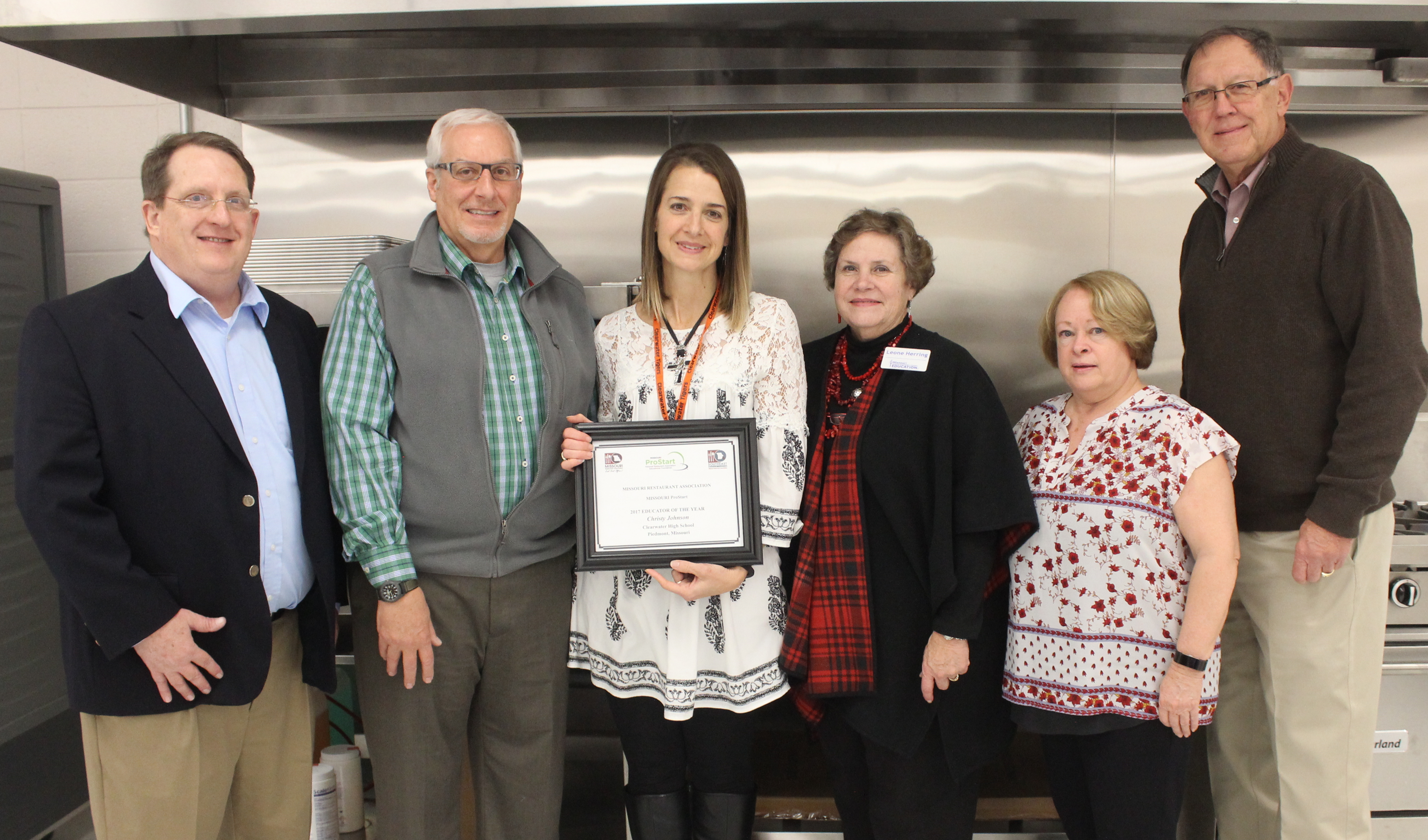 Pictured with Mrs. Johnson are Bob Bonney, CEO of the Missouri Restaurant Association; John LaRocca, Missouri ProStart Coordinator; Leone Herring, Director of Family and Consumer Sciences at the Missouri Department of Elementary and Secondary Education; Barb Hergenroether, Director of Operations at the Missouri Restaurant Association; and Herman Styles, President of the Missouri Restaurant Association.