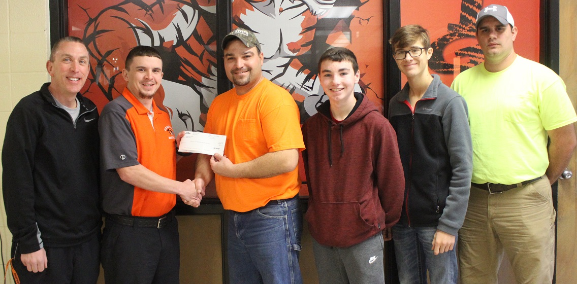Shout out to the CertainTeed Corporation for their donation of $825 to the Clearwater Tigers baseball team to purchase a new net for the rolling on-field batting cage! Athletic Director Shannon England and Tigers Baseball Coach Cole Sheets accept the check from Gads Hill plant employees Brandon Lashley and Ben Diesel. Baseball players Benton Lashley and Parker Montgomery were also present for the award.