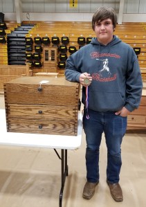 Trey Rivas, Nathan Babb, and Tristan Burch (not shown), presented exceptional projects at the 40th Annual Industrial Technology Fair, held April 24-25 on the campus of Three Rivers College in Poplar Bluff. This qualifies them for state competition at Lake of the Ozarks, organized by the Technology Education Association of Missouri (TEAM). In addition to three high school qualifiers, two Clearwater Middle School students also advance to state: Clurie Briley with a video and Drew Gayle with a photo. Categories for competition included woodworking, metalworking, drafting, photography, graphic design, and more.