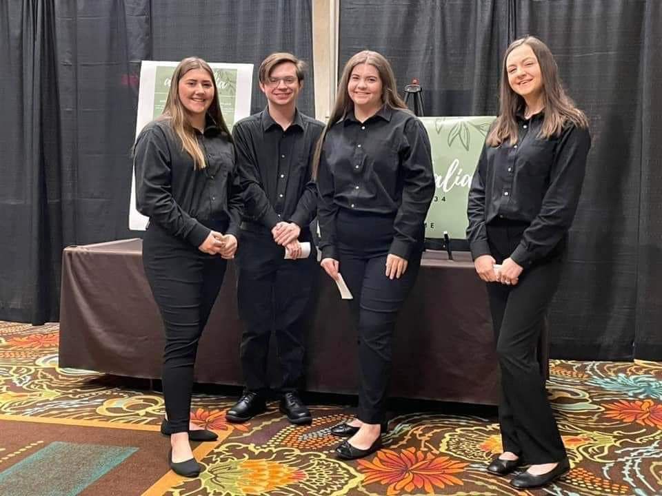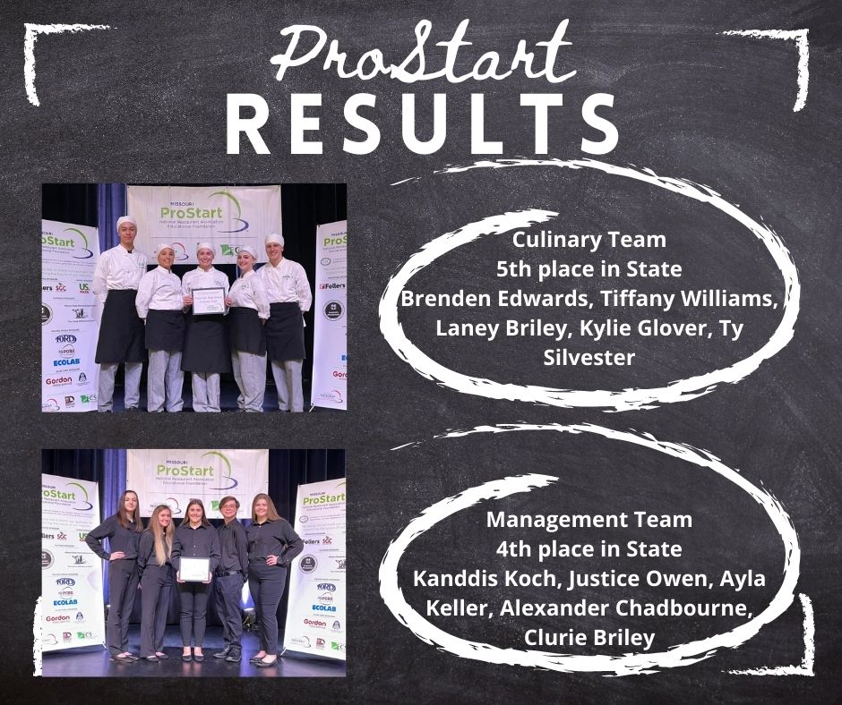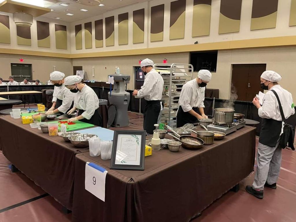 Mrs. Johnson’s ProStart students left Thursday morning for a competition in Springfield. While there, the management team presented their restaurant plan to judges and were interviewed by a panel of judges. The culinary team cooked a meal while judges watched. As of 12:45, all competitions are complete and now we wait for results.