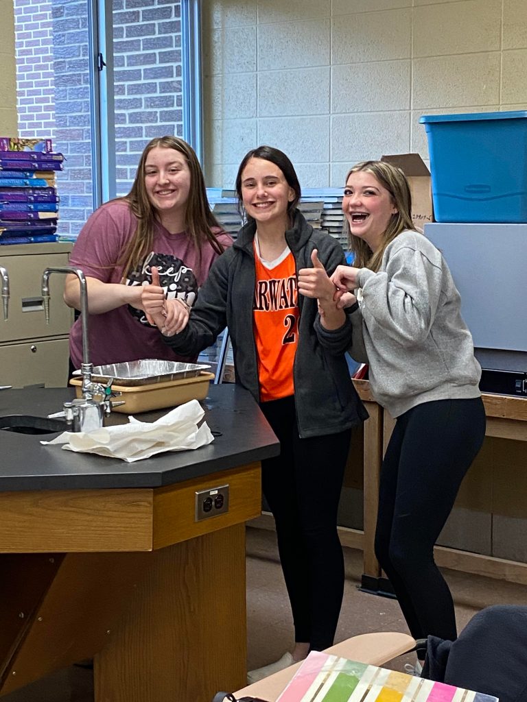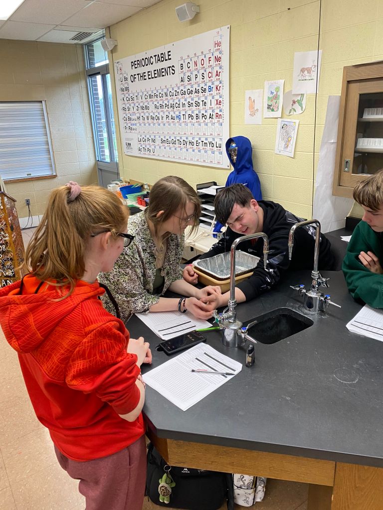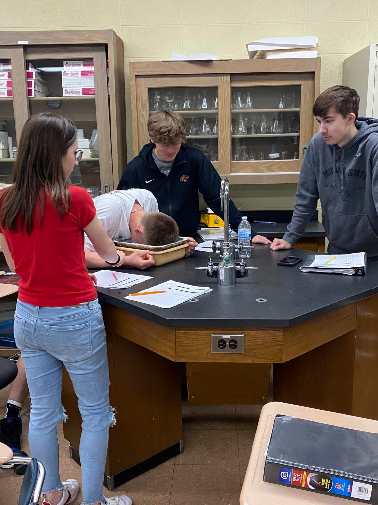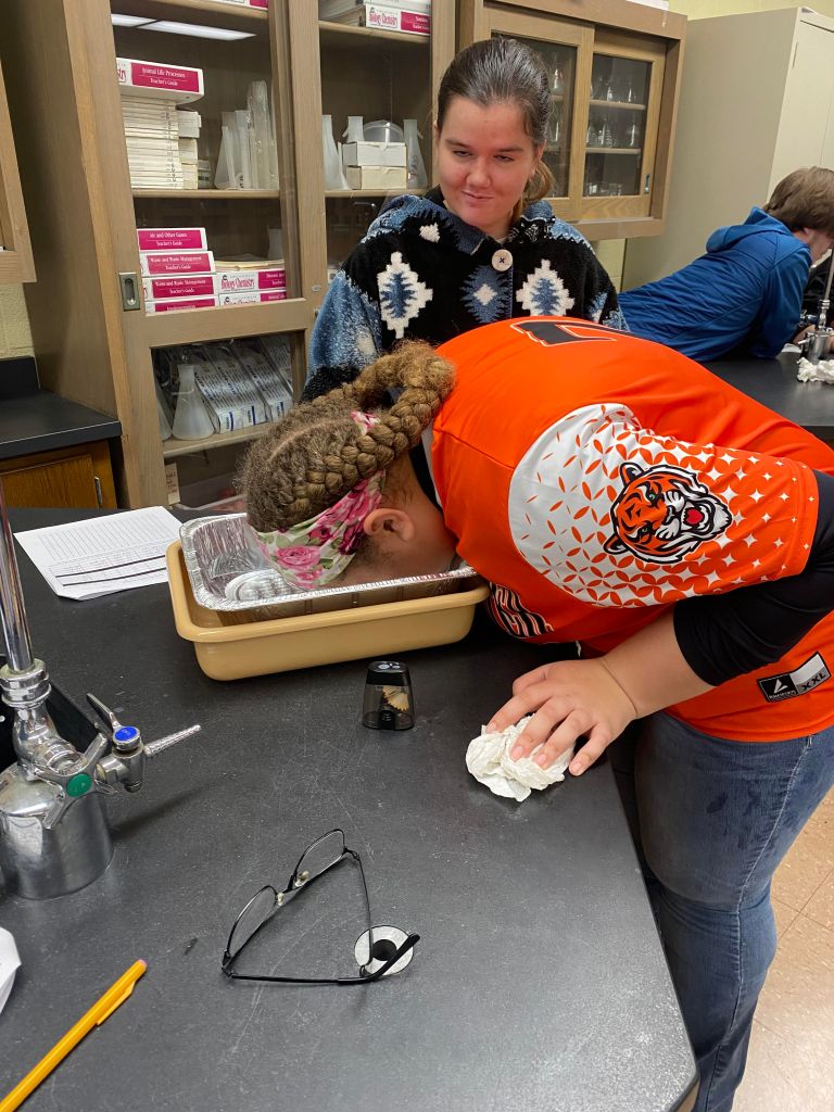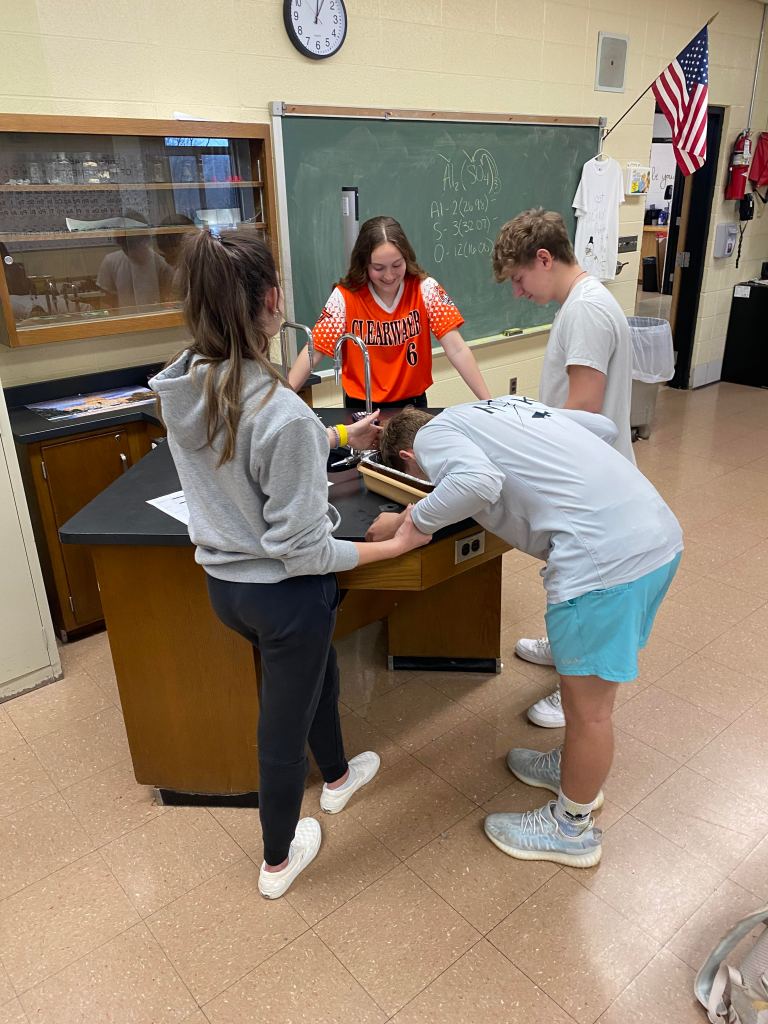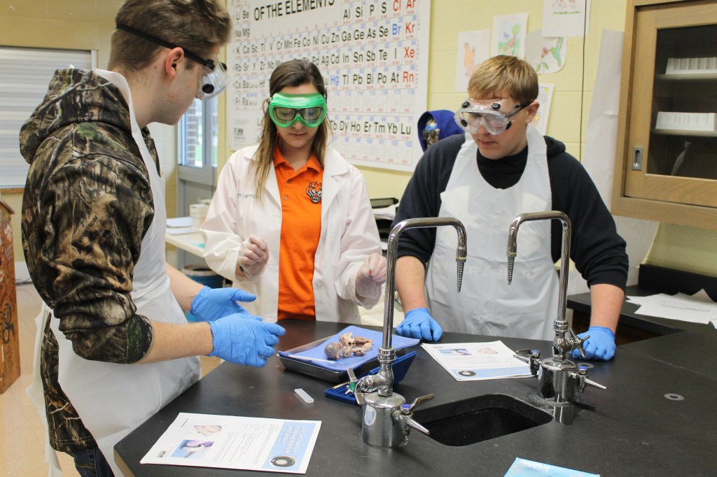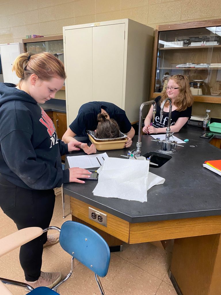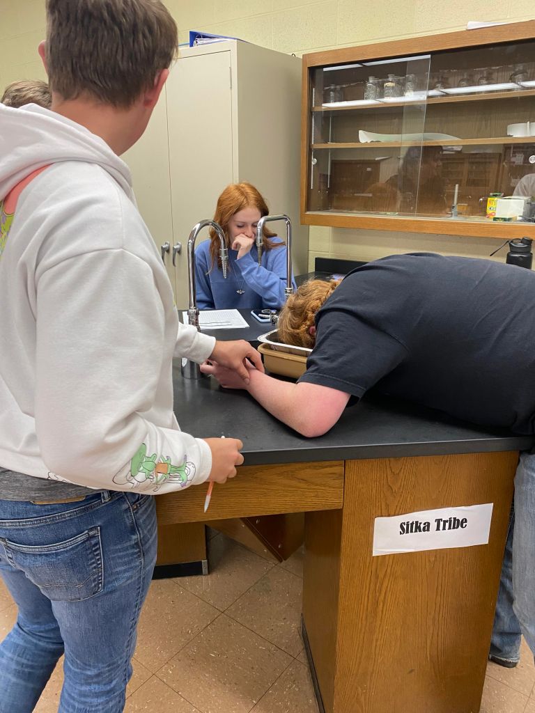Mrs. Martin’s Anatomy Class is learning about the eyeball sensory system and dissecting cow eyes. (Pictures by Kloe L’Heureux) And in Biology, students participated in a Mammalian Dive Response Lab.