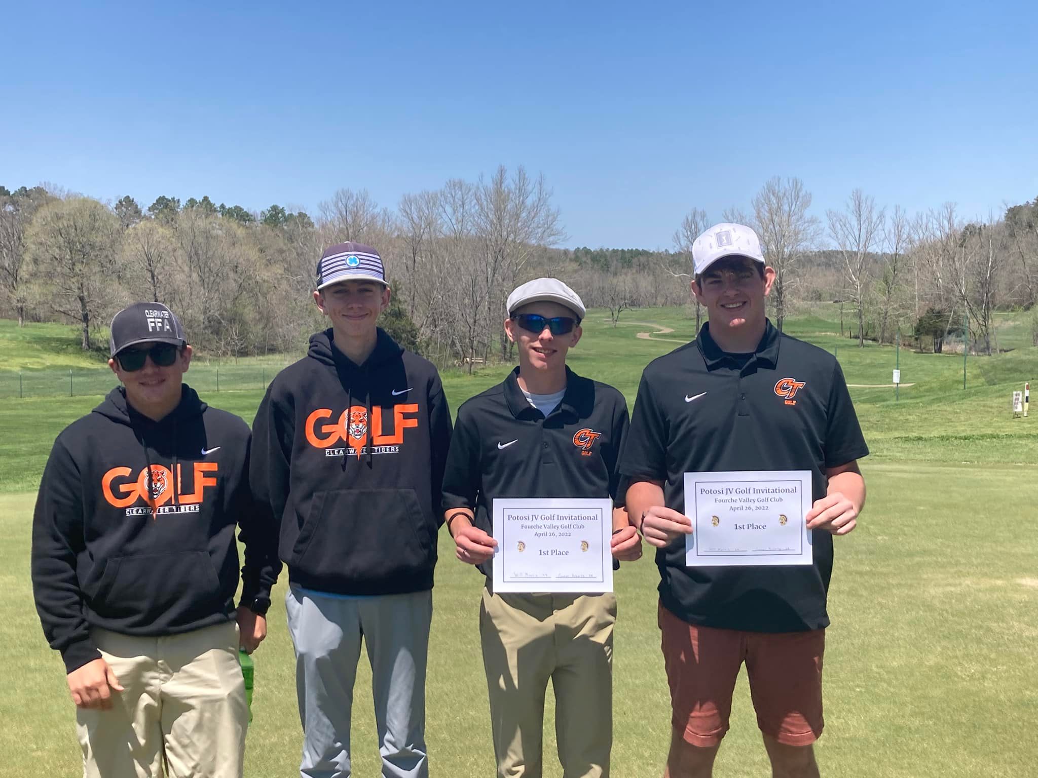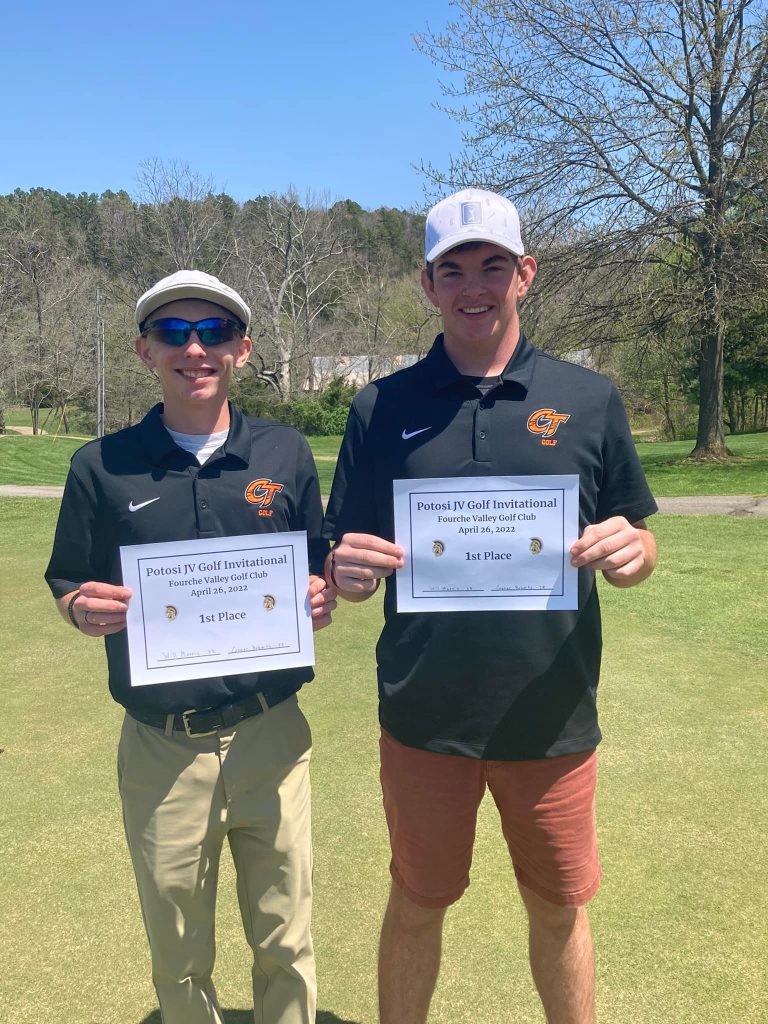 On Tuesday, The Clearwater Tigers Golf Team traveled to Fourche Valley Golf Club to play in the Potosi Invitational Scramble. Both Tigers teams finished in the top 10 with Will Morris and Conner Roberts finishing in first place with a 9 hole score of 38.