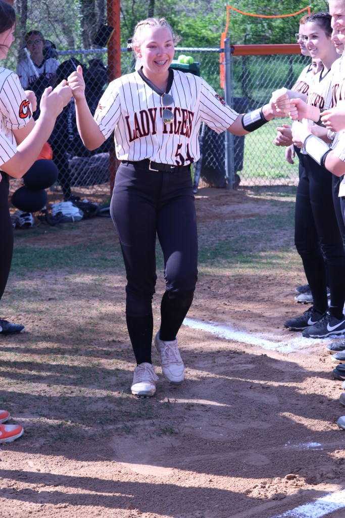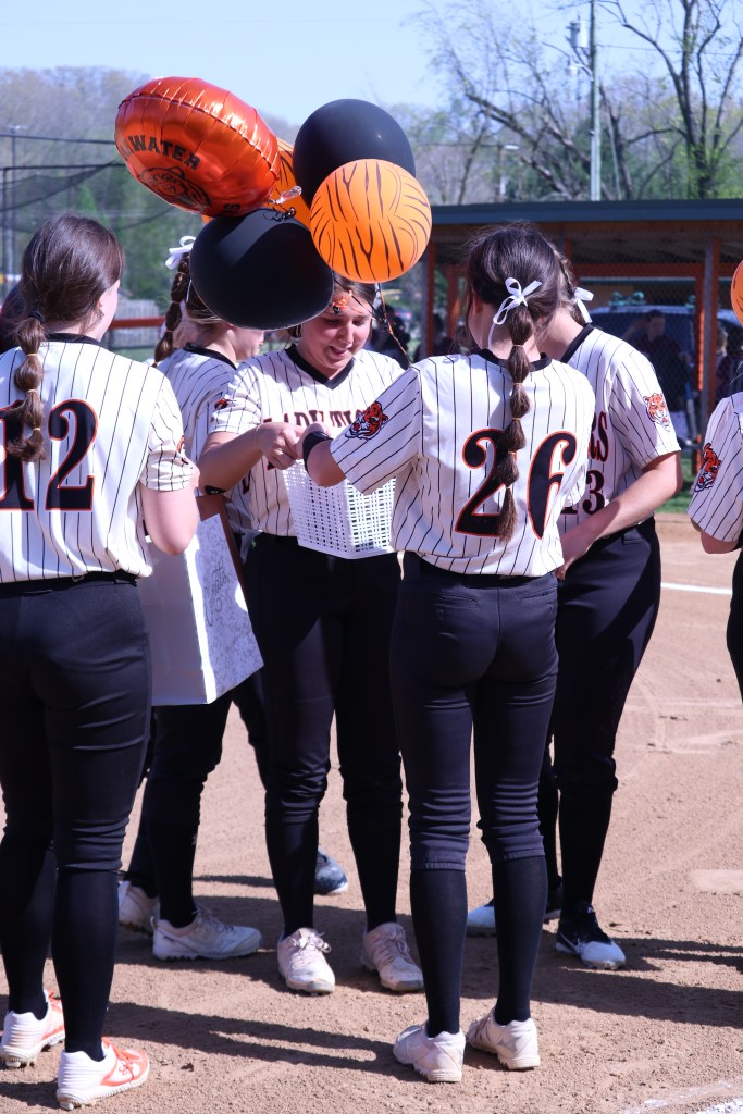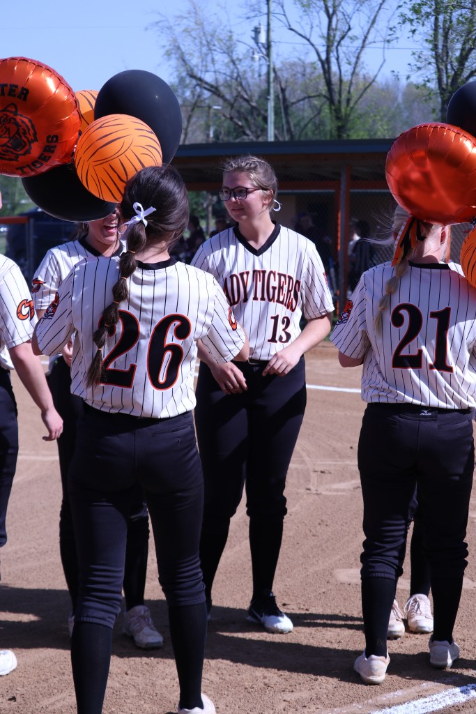 Senior Day was held prior to the games on Wednesday, April 27. Seniors Becca Brewington, Lydia Mays, and Tiffany Williams were honored by their coaches, teammates, and families.
